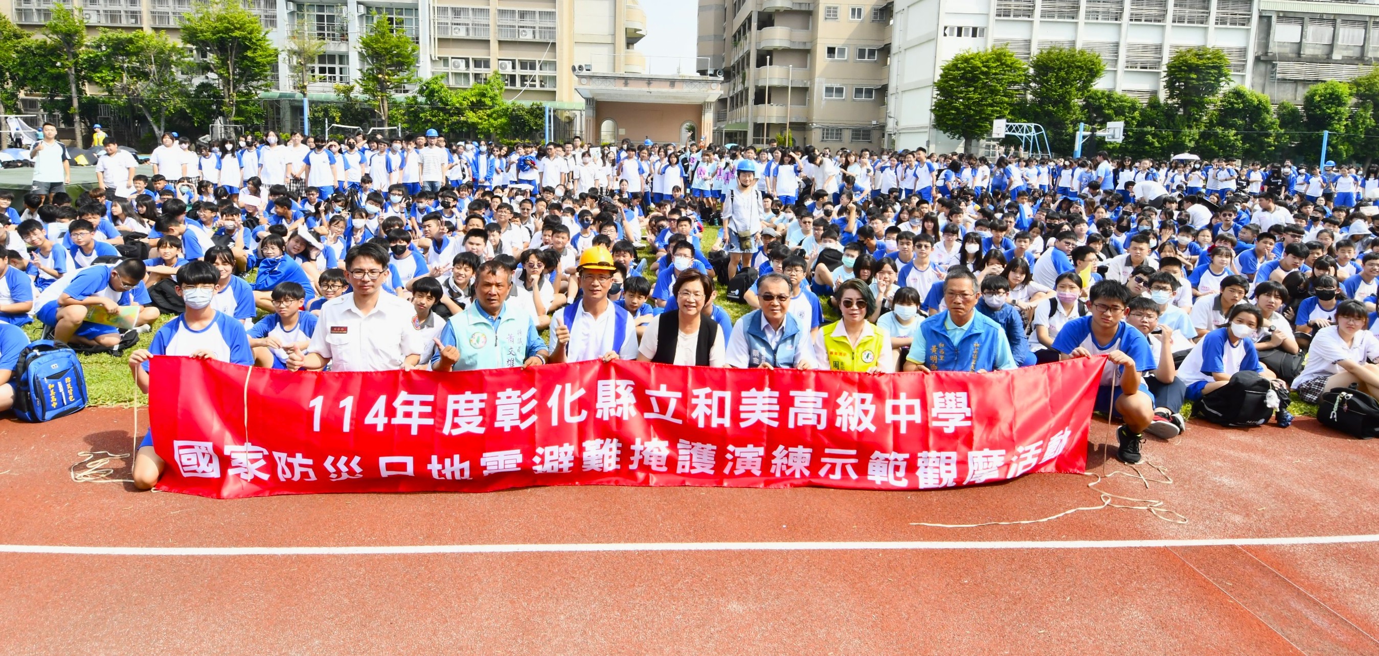 新聞焦點 114年度國家防災日 彰化縣辦理大規模地震避難掩護演練 發布日期 2025/09/19~2025/10/19 | 發佈單位: 教育處 | 發佈日期: 張科長 7531831 | 更新日期 2025/09/19 | 瀏覽人數: 26人 彰化縣政府為強化學校防災教育,提升教師與學生面對災難發生時的應變能力,今(19)日上午在縣立和美高中舉辦「114年度國家防災日地震避難掩護演練活動」。結合中央氣象署強震即時警報系統,與全國同步在9時21分時,於全縣各級學校(含幼兒園)進行1分鐘地震避難掩護演練。縣長王惠美前往視察師生演練情形,並帶頭與校長、老師、學生參與演練。王縣長提醒大家務必遵守地震避難三步驟「趴下、掩護、穩住」,同時遵循「不語、不跑、不推」三不原則,依緊急避難疏散路線迅速至安全地點集合,防患於未然,降低災害風險。 王縣長表示,今天彰化縣各級學校一併進行防災演練,在和美高中特別感謝校長及老師們,除地震避難外,增加複合式防災演練內容,包括火災、受傷救護等,讓大家對路線及救災技巧等各方面能更加熟悉。受極端氣候影響,颱風、地震、暴雨頻率顯著增加,時常威脅民眾生命安全,先保護好自己才能夠救助他人,也要學習CPR等以提升自己的救護能力,希望孩子把學到的防救災的觀念帶回家裡。感謝在縣府團隊、所有師長的努力下,今年彰化縣在災防教育中,獲得縣市組最高榮譽「卓越點燈獎」,未來期待大家在防災救護持續不斷精進,共同守護鄉親的生命安全。 教育處表示,今日在和美高中的演練過程中,師生在警報發布後能保持冷靜,立即執行避難動作,並在老師引導下秩序良好、快速完成疏散,各班導師也即時安撫情緒、點名回報,確保全員平安。此次演練流暢順利,展現平日落實防災教育的成果,感謝學校師長用心指導與同學們專注投入。 另外,彰化縣積極推廣防災教育,成效卓越,在今年教育部辦理第13屆防災教育績優縣市、學校及有功人員評選中,彰化縣榮獲縣市組最高榮譽「卓越點燈獎」,由縣府推薦的12所學校也全數獲獎。大城國小獲頒【防災種子校園】,大莊國小榮獲【績優】,明聖國小則獲【入選】;基礎建置防災校園部分,共有7校獲獎,包括和美高中、東和國小【績優】、中山國小、潮洋國小【優選】、和東國小、湳雅國小及花壇國中【佳作】。此外北斗國小校長游美雯榮獲【防災教育輔導團資深召集人銀獎】,明聖國小校長張富凱榮獲【防災教育教學組推動有功人員】,寶山國小校長陳泰佑則榮獲【行政組】獎項,充分展現彰化縣在防災教育上的成果與實力。 展望未來,縣府將持續推動「防災教育中長程計畫」,包括防災校園建置、種子師資培訓、複合式防災觀摩及校園災害防救計畫撰寫等,並透過防災教育輔導團協助各校健全防救編組。同時將持續推動校園逃生演練、安全地圖繪製與家庭防災卡落實,讓防災教育不僅深耕校園,更能延伸至家庭與社區,攜手打造「美好彰化・希望城市」。 與會貴賓有縣議員周君綾、蕭文雄、縣府教育處長蔡金田、副處長張淑珠、彰化縣消防局第一大隊副大隊長江錦松、和美高中校長徐進將、各級民意代表與地方仕紳等。