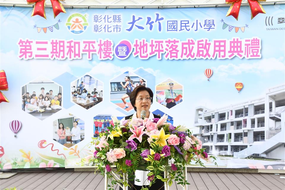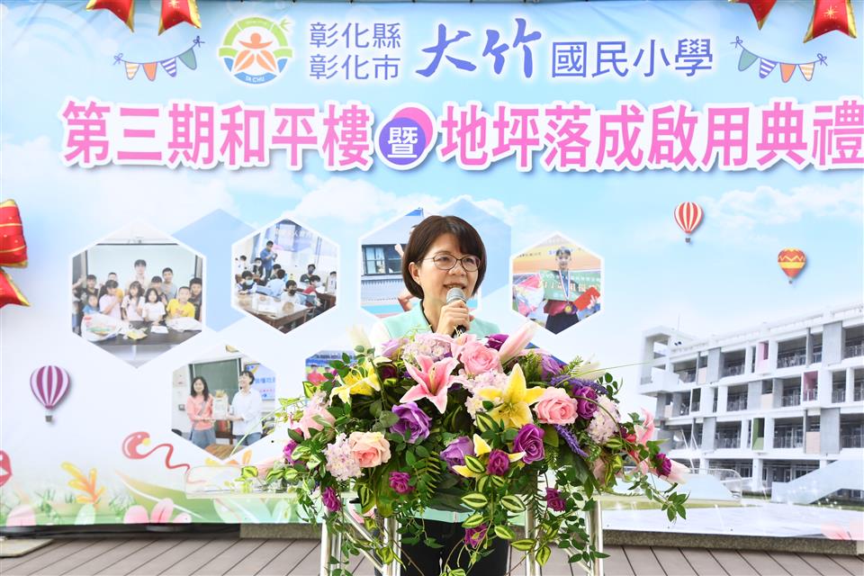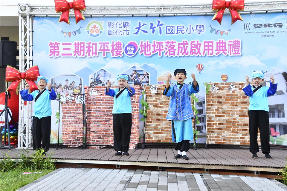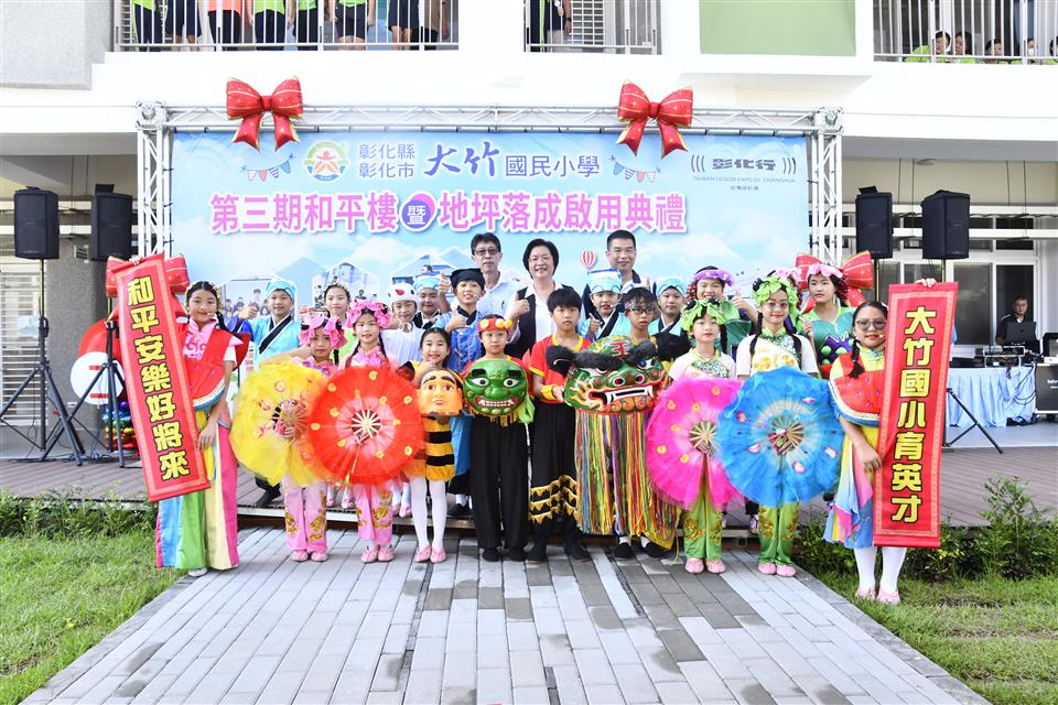 新聞焦點 完成大竹國小校舍更新最後一哩路 第三期和平樓暨地坪落成啟用典禮 發布日期 2025/09/25~2025/10/25 | 發佈單位: 教育處 | 發佈日期: 張科長 7531831 | 更新日期 2025/09/25 | 瀏覽人數: 22人 彰化縣政府25日上午在大竹國小辦理「第三期和平樓暨地坪落成啟用典禮」,彰化縣長王惠美、大竹國小校長黃馭寰與各級民代與會。王縣長表示,從她上任以來,大竹國小忠孝樓、仁愛樓到這次的和平樓的動土及剪綵,一路走來,見證大竹國小校舍改建完成的每一哩路,不僅和平樓獲得2025 年建築園冶獎,代表近年彰化縣尋求建築美感設計的重要成果,和平樓自民國69年啟用至今,歷經40餘年。由於建築結構逐漸老舊,牆面龜裂、樑柱鏽蝕,伴隨漏水與水電管線老化等問題,加上教室空間不足,長期超負荷使用,已對孩子的學習安全與品質造成影響,新校舍規劃17間教室,同步全面整修地坪,不僅提供師生安全、舒適的學習環境,也讓校園風貌煥然一新,打造全新的和平樓。 王縣長表示,投資教育就是投資未來,感謝議長謝典林及所有議員們對預算的支持,縣府運用一般性補助款8,030萬元辦理拆除重建,感謝立委在中央協助爭取教育部668萬元,另外,縣府也配合167萬元整修地坪,總經費達8,865萬元。縣府另外投入914萬元,用於冷氣、課桌椅添置、運動場地改善及英語國際村設立,全面升級教學與生活環境,不僅提供師生舒適的學習空間與完善的運動設施,也讓課程與國際接軌,協助孩子培養自信、拓展格局,成為未來社會中堅力量。 王縣長指出,大竹國小在黃馭寰校長、師長與家長會的共同努力下,允文允武,在語文、藝文、體育等面向表現出色,田徑隊於縣運勇奪4金1銀並包辦總錦標冠軍;桌球小將在國手選拔奪冠、總統盃獲全國第五;語文競賽勇奪泰雅語朗讀冠軍;健康促進、反毒及防制性剝削微電影比賽亦屢獲佳績,充分展現學子多元發展的卓越才華。 大竹國小校長黃馭寰表示,感謝大家齊聚一堂,共同見證大竹國小「和平樓」的落成啟用,大竹國小校舍歷經8年,斥資3.2億元的重建工程,如今已全部更新,並沿用「八德」精神為各樓命名。這次和平樓以柔和色調與交錯景觀鼓勵學童「登高望遠,光亮向前」,規劃多層次的戶外空間,讓孩子們在課餘時間,就能輕易享受到戶外活動的樂趣。感謝教育部、縣府的大力協助,補助地坪整建經費,縣府更全額投入更新和平樓內的課桌椅與設備,讓師生們能夠在嶄新的校園中享受優質的教學環境。 教育處表示,由於校園位於南路鷹過境的重要棲地,新校舍與地坪設計特別融入複層綠化與生態跳島概念,營造安全、舒適並兼具生態永續的校園,榮獲2025建築園冶獎的肯定。秉持「投資教育就是投資未來」的理念,持續推動結合VR與SDGs的英語國際村,強化雙語及數位學習環境,並完善運動設施、校園美感與閱讀教育,期盼孩子們在安全優質的校園中,深耕在地、拓展視野、放眼國際。 與會人員有立法委員謝衣鳯、黃秀芳、縣議員温芝樺、白玉如、李成濟、黃柏瑜、莊陞漢、楊子賢、彰化市長林世賢、縣府教育處長蔡金田、工務處副處長陳銘男、大竹國小校長黃馭寰、家長會長張嘉源、家長會秘書長廖乙如、大竹國小志工隊長連德偉、大竹國小校友會理事長洪品聰、彰化縣各級學校家長會聯合會理事長許友忠、彰化師範大學教授鄭國枝、三村社區發展協會理事長陳玉霞、大竹社區理事長李素蘭、呂政道建築師事務所建築師呂政道、各級民代與地方仕紳等。