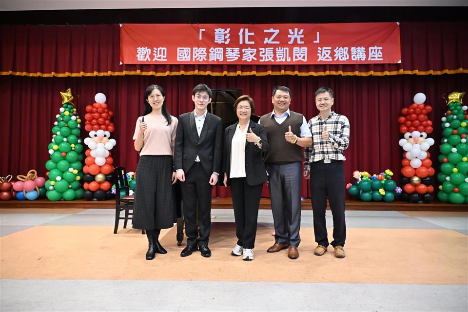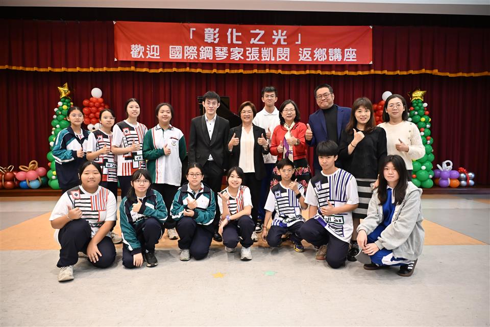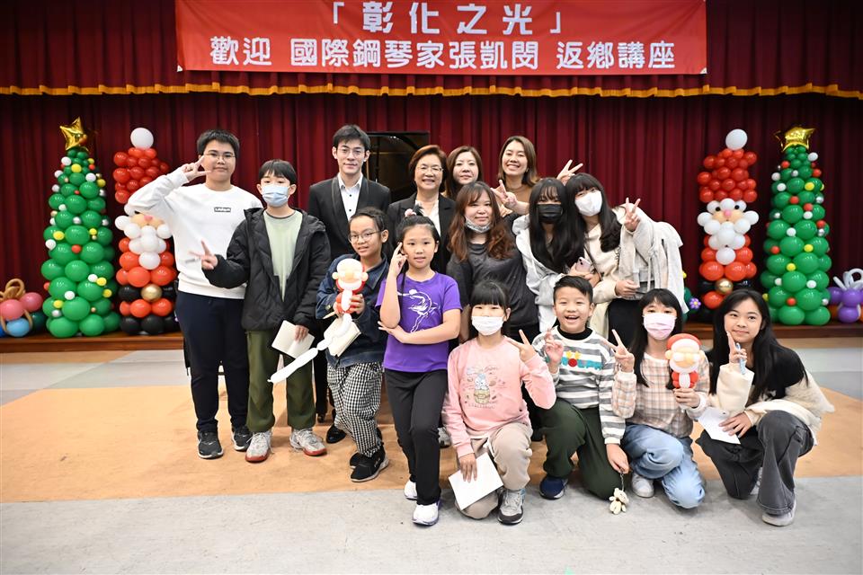 新聞焦點 鋼琴上跳動的音符點亮彰化之光 鋼琴家張凱閔鼓勵學子勇往直前 發布日期 2025/12/24~2026/01/24 | 發佈單位: 教育處 | 發佈日期: 陳科長 7531811 | 更新日期 2025/12/24 | 瀏覽人數: 37人 《置頂》 為提升藝術教育品質,激勵音樂班學子勇敢追尋夢想,彰化縣政府於今(24)日在民生國小音樂廳舉辦「張凱閔鋼琴家音樂講座」,彰化縣長王惠美與會與鋼琴家張凱閔一同鼓勵在場學子。本次活動吸引數百位對音樂懷抱熱情的師生參與,現場氣氛溫馨且深具啟發。 王縣長表示,來自鹿港的旅美鋼琴家張凱閔,從民生國小音樂班起步,近年獲獎無數,2023年勇奪盧布爾雅納音樂節國際鋼琴大賽首獎,更以最年輕的決賽選手贏得2024年第21屆里茲國際鋼琴大賽第4獎與皇家利物浦愛樂協會獎,極為不易。並在2021跟2025年,兩度入圍華沙蕭邦國際鋼琴大賽第2輪決賽。很高興邀請到凱閔回來分享,期盼讓同學了解,在追求成功的過程中,如何克服困難與挫折;也希望協助同學領略,要站上國際舞台,需要具備哪些條件。 王縣長指出,學習音樂的過程中,師長教導及父母支持非常重要,感謝民生國小師生長期用心投入,今年民生國小音樂班在管絃樂、弦樂、管樂皆晉級全國賽,希望再創佳績,為彰化爭光。縣府近期研議讓同學有機會異地學習,並邀請大學教授指導國中小學生,盼讓同學能夠在音樂領域上航向更開闊的視野。 鋼琴家張凱閔先生表示,今天很高興回到母校民生國小,從小接觸音樂、每天練琴,深刻感受到養成習慣的重要性。以前每天練1、2小時,長大後對自己的要求越來越高,現在每天除唸書外,會花大部分時間勤練琴藝。音樂不只是興趣,也能陶冶性情,學琴的各位夥伴不論未來是否願意在音樂專業領域上持續發展,學音樂都是一個很棒的選擇。 教育處表示,鋼琴家張凱閔在講座中以精湛的琴藝演奏,現場巧妙詮釋音樂的魅力,並與學生進行深入的對談與交流。他以親身經歷鼓勵學子堅持夢想,勇敢面對挑戰,讓現場師生深受感動。此次音樂講座,不僅是藝術回響,更是一場跨越世代的對話,把藝術的種子悄悄地種在許多孩子心中,灌溉著養分等待萌芽,未來將因各自的持續努力而能開創更加湛藍的天際。 與會人員有縣府教育處長蔡金田、民生國小校長曾俊堯、家長會長許尹榕、音樂老師趙千慧、彰化藝術高中校長蔣秉芳、家長會長蕭啓群、卷木森活館總監黃昱哲等人。