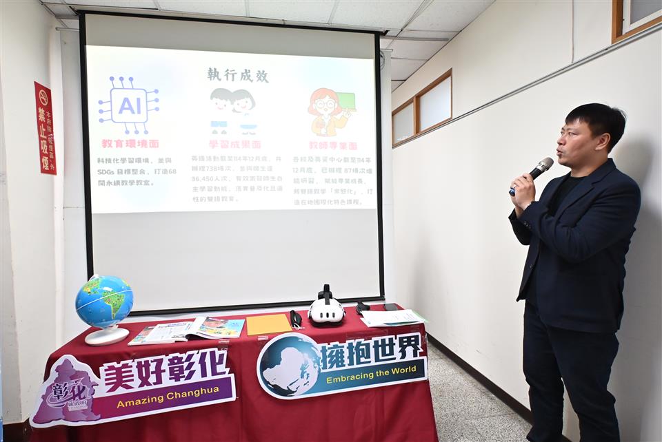 新聞焦點 智學彰化‧放眼全球~啟動雙語AI情境教室,AR/VR沉浸體驗零距離 發布日期 2026/02/11~2026/03/11 | 發佈單位: 教育處 | 發佈日期: 許科長 7531821 | 更新日期 2026/02/11 | 瀏覽人數: 23人 《置頂》 彰化縣長王惠美縣府團隊積極提升軟硬體兼具的教育品質,建置AI情境教學的英語國際村。教育處於今(11)日上午在縣府6樓咖啡藝廊辦理「智學彰化‧放眼全球~啟動雙語AI情境教室,AR/VR沉浸體驗零距離」座談會。邀集師生代表共同見證彰化縣推動英語國際村與雙語AI情境教室的豐富成果,展現彰化教育全面接軌國際的具體行動力。 教育處長蔡金田表示,雙語國際與科技是王縣長極為重視的教育理念,114年彰化縣首創英語國際村,共有68所學校提出申請,透過AI情境教室及AR擴充實境與VR虛擬實境,讓孩子能在自然的虛擬環境中進行沉浸式學習。這一年來,參與的老師及學生的學習反映都很好,今年另有40多所學校提出申請。 教育處長蔡金田指出,英語國際村不僅讓孩子單純體會VR遊戲,更透過科技措施,將學校的校本課程、校訂課程、特色課程,融入AI學習。從傳統教學到數位教學,轉型至AI融入課程教學,在學校設備、師資及學生學習上不斷提升成效。雙語國際與科技是教育領域的重要趨勢,彰化也將跟隨趨勢,引領孩子走在教育時代的前端。 縣府為落實國際教育扎根政策,目前已在全縣國中小設立68所英語國際村,全面建置AI情境教學環境,導入AR、VR及AI科技設備,總計投入超過經費3,800萬元。參與座談會的老師分享,讓學生配戴VR裝置彷彿身歷其境,讓學習英語變得有趣又有成就感;現場學生則興奮地表示,透過AR和VR可以直接走進虛擬的國外場景互動,不用出國也能練習說英文,學習變得就像探險一樣有趣! 教育處表示,本縣114年度「中小學生運用酷英網(Cool English)自學與認證計畫計2萬6,993位中高年級國小生參加,通過認證且平均達80分以上共有7,868位國小生。英語國際村的核心不僅在於軟硬體更新,更強調將AI、AR、VR等前瞻科技深度融入雙語課程,並接軌聯合國永續發展目標(SDGs)。藉由科技輔助,老師能規劃更具全球視野的專題學習,讓學生在練習英語口說同時,也學會運用AI工具蒐集資訊,讓彰化孩子在數位浪潮中厚植接軌世界的永續實力。 未來縣府將持續挹注教育資源,打造「智學彰化、放眼全球」的學習藍圖,共同為彰化學子打造國際化的學習舞台。讓每一位孩子不論身處城市或偏鄉,都能昂首站在同一條起跑線上,自信地迎向從世界灑落的光芒。 與會貴賓有縣府教育處長蔡金田、平和國小校長王麗惠、國聖國小校長李政穎、中山國小教務主任張雅琇。