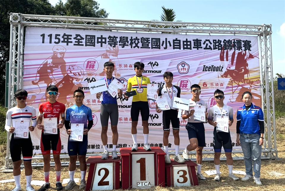 新聞焦點 115年全國中等學校暨國小自由車公路錦標賽 彰化縣榮獲5金3銀3銅佳績 發布日期 2026/02/20~2026/03/13 | 發佈單位: 教育處 | 發佈日期: 喬科長 7112175 | 更新日期 2026/02/13 | 瀏覽人數: 9人 115年全國中等學校暨國小自由車公路錦標賽於2月8日至9日在屏東舉辦,吸引各縣市菁英選手逾210支隊伍、535名選手同場競技,挑戰多元地形賽道與極限體能。彰化縣由田中高中及大村國中組隊參賽,選手在高強度賽程與嚴峻賽道考驗下穩定發揮,共獲得5金3銀3銅佳績。彰化縣長王惠美肯定選手優質表現,自由車運動極度考驗體能與意志,選手展現不畏挑戰的運動家精神,是青少年最佳典範。同時感謝教練與學校長期投入,讓選手無後顧之憂追逐夢想。 田中高中自由車隊表現亮眼,總計獲得2金、1銀、1銅,拿下高女團體總錦標第三名。總統教育獎得主游佩璇於高一女生組賽事中表現穩定,勇奪個人公路計時賽及公路賽雙金牌;高一男生組選手詹博凱分別獲得公路賽銀牌與計時賽銅牌,展現高度潛力。 大村國中自由車隊最終累計奪下3金、2銀、2銅,並榮獲國男團體總錦標第一名。國二選手林昊辰在個人計時賽中摘金,展現節奏掌控能力;國二選手陳湘蓉與施普章於公路賽中雙雙奪冠,並在個人計時賽中各獲銀牌肯定。林昊辰及國三女選手陳巧臻亦於激烈競爭中奪銅站上頒獎台,盡顯團隊實力。 教育處表示,自由車體育班在彰化縣成立至今4年,即在全國性賽事中交出亮眼成績,實屬不易,顯示縣府近年聚焦資源及培育策略已逐步展現成效。透過完善訓練、專業教練及國中、高中體育班銜接機制,協助選手在短時間內累積經驗與競技實力。此次全國賽成果,正是制度、學校與選手相互加乘的具體展現。未來縣府將持續深化訓練與資源投入,協助更多彰化孩子在全國及國際舞台上勇敢散發出耀眼的光芒。