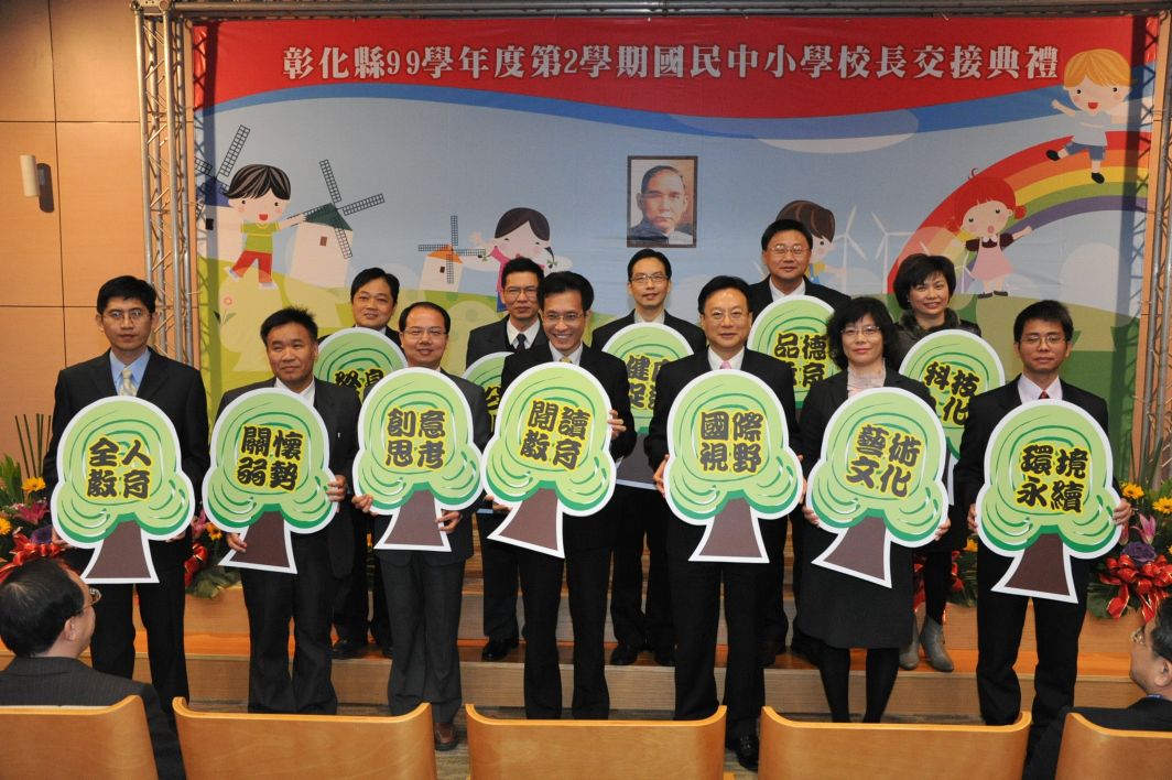 新聞焦點 彰化縣99學年度第2學期國民中小學校長交接典禮 歷史訊息 | 發布日期 2011/01/31~2011/02/28 | 發佈單位: 教育處學務管理及課程發展科 | 發佈日期: 教育處科長 蔡孟愷 7222151-0421 | 更新日期 2011/01/31 | 瀏覽人數: 117人 《置頂》 彰化縣99學年度第2學期國民中小學校長交接典禮,今(31)日於彰化縣原住民生活館舉行,由卓伯源縣長主持,教育處林田富處長擔任監誓人,主計處林碧娥專員擔任監交人,本次接任校長任期自100年2月1日至104年1月31日。卓縣長期勉校長們一本初衷,時時反省是否仍保有當初獻身教育或初任校長時的理想與熱忱。 典禮在弦樂發展聯盟「亂成一團」樂團但悠揚有序的樂聲中進行,過程中,10位退休校長將代表彰化縣重要教育發展方向的教育樹苗傳遞給新任校長,並由卓伯源縣長及林田富處長率領10位新任校長將教育樹苗種植於教育園地,除了表達教育是百年樹人工作,大家務必盡心盡力、創新付出,更代表薪火相傳、永續發展之意義。 本次交接典禮,卓伯源縣長致贈每位退休校長紀念品及感謝狀,感謝退休校長將人生的黃金時期奉獻於教育,也希望退休校長繼續給予教育處及各學校最大的關心與協助,同時,卓伯源縣長也期許所有調任的校長能夠一本初衷,無論調至任何一所學校都能全力以赴、全心服務,並恭喜10位新任校長將要展開教育生涯新的里程碑。 彰化縣99學年度第2學期國民中小學校長遴選結果,國中部分計有4位校長留任。3位校長調任、2位校長新任;國小部分有19位校長留任、9位校長調任、8位校長新任,名單如下: 一、國中: (一)留任原校:秀水國中羅明星校長、和美國中李得泰校長、社頭國中吳水順校長、福興國中涂秋美校長。 (二)調任及新任校長:彰泰國中由彰興國中魏清山校長調任,彰興國中由鹿鳴國中蔣秉芳校長調任,鹿鳴國中由候用校長李錦仁接任,彰德國中由芳苑國中吳麗月校長調任,芳苑國中由候用校長謝國士接任。 二、國小: (一)留任原校:中山國小施東陽校長、茄荖國小許聖明校長、大榮國小鍾萬春校長、伸仁國小包小娟校長、新興國小盧焜煌校長、管嶼國小陳文卿校長、埔鹽國小陳鴻杉校長、橋頭國小賴秀英校長、湳雅國小劉素珠校長、崙雅國小許孝麟、仁豐國小陳讚誠校長、埤頭國小吳素碧校長、合興國小洪宗海校長、草湖國小謝木麟校長、聯興國小陳信福校長。 (二)調任及新任校長:白沙國小由東芳國小林鳳蘭校長調任,東芳國小由白沙國小梁坤益校長調任,華南國小由寶山國小吳承燕校長調任,寶山國小由後寮國小鄭孟忠校長調任,後寮國小由候用校長吳文輝接任,陝西國小由潮洋國小洪榮炎校長調任,潮洋國小由候用校長陳志盛接任,民生國小由平和國小林火旺校長調任,平和國小由馬興國小林水木校長調任,馬興國小由大安國小吳宗達校長調任,大安國小由新民國小黃俊勳校長調任,新民國小由候用校長黃信君接任,大興國小由候用校長林俊成接任,陸豐國小由候用校長顧淑芬接任,大莊國小由候用校長張樹閔接任,明湖國小由候用校長惠萍接任,大城國小由候用校長陳錦廣接任。