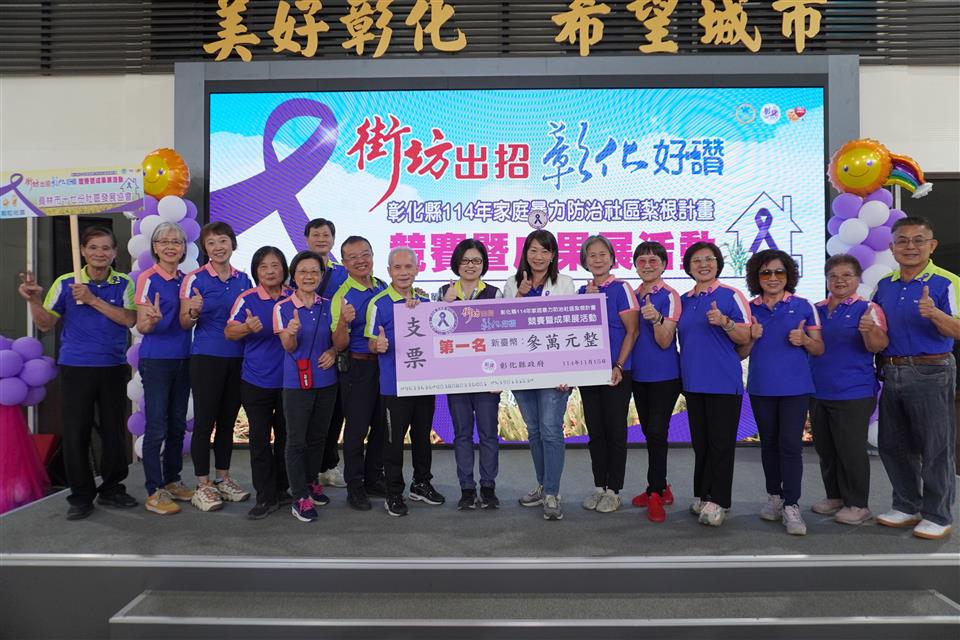 其他活動 彰化縣114年度家庭暴力防治社區紮根計畫- 街坊出招 彰化好讚競賽暨成果展活動 發布日期 2025/11/15~2025/12/15 | 發佈單位: 社會處保護服務科 | 發佈日期: 劉芮安 04-7261113分機248 | 更新日期 2025/11/15 | 瀏覽人數: 2人 彰化縣政府於今(15)日在本府1樓中庭辦理「彰化縣114年度家庭暴力防治社區紮根計畫-街坊出招 彰化好讚競賽暨成果展」活動。 本府感謝各社區夥伴們積極參與初級預防工作,透過在地的力量落實家庭暴力防治,至103年起我們即積極配合中央政策,推動「街坊出招-社區防暴創意競賽活動」屢獲佳績。未來將繼續藉由政府及民間的公私協力,建構彰化縣家暴防治網,共同創美好彰化 希望城市。 本(114)年度參與家庭暴力防治紮根計畫競賽暨成果展的社區有9組,包括秧苗社區組(埔鹽鄉廍子社區、秀水鄉馬興社區、大城鄉東港社區、芬園鄉溪頭社區等4組社區)及穀粒社區組(員林市十七份社區、和美鎮雅溝社區、鹿港鎮萬興社區、二林鎮溝頭社區、田中鎮太平社區等5組社區)。 本次競賽之評審團隊係邀請台中教育大學管理學院社會企業中心柯勇全執行長、亞洲大學陳秀靜副教授及亞洲大學謝玉玲副教授擔任評審委員,各社區透過團隊入場活力秀、豐富的簡報及書面資料,展現具在地特色的反暴成果,評審團隊審閱社區豐碩成果後,遴選出優秀社區代表本縣參加衛生福利部明年所舉辦的街坊出招-社區防暴創意競賽活動,為本縣爭取最高榮譽!秧苗社區組由廍子社區獲得第一名、馬興社區獲選為第二名;穀粒社區組由十七份社區獲選為第一名、雅溝社區獲選為第二名、溝頭社區獲選為第三名。 希冀藉由推動「街坊出招-社區防暴創意競賽活動」,建置具社區特色的反暴網絡及宣導策略,並透過專家學者及縣府社工組成防暴培力師團隊進入社區中輔導,將反家暴意識紮根於社區,透過下而上的初級預防宣導工作的推動,實現「暴力零容忍」的目標。